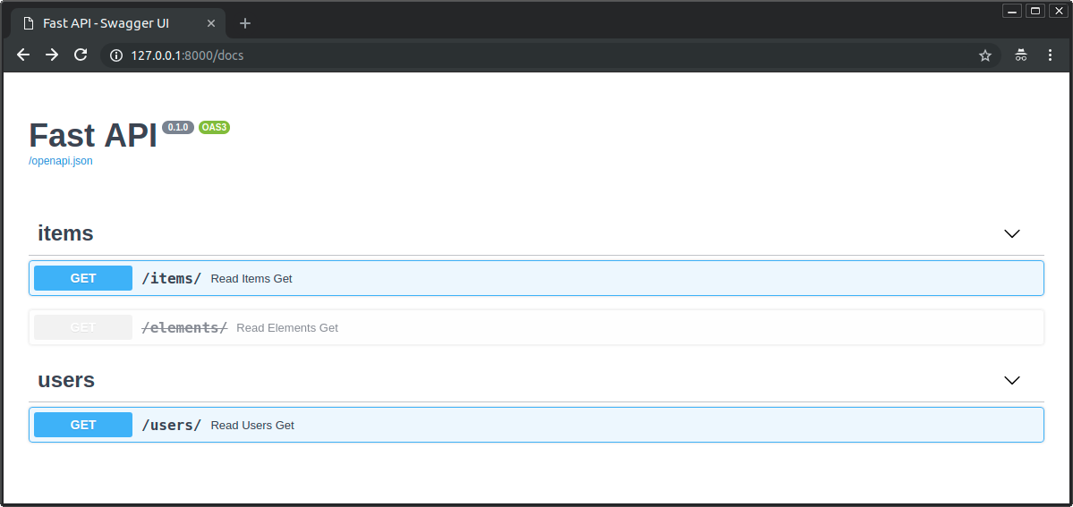@app.get("/elements/", tags=["items"], deprecated=True)